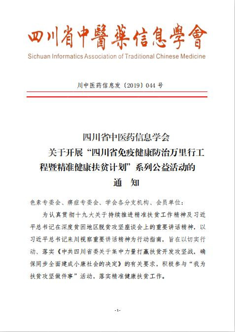 前言:落实《中共四川省委关于集中力量打赢扶贫开发攻坚战,确保同步全面建成小康社会的决定》的有关要求,积极参与“我为扶贫攻坚做件事”活动,落实健康扶贫工作。四川省中医药信息学会决定开展“四川省免疫健康防治万里行工程暨精准健康扶贫计划”系列公益活动。